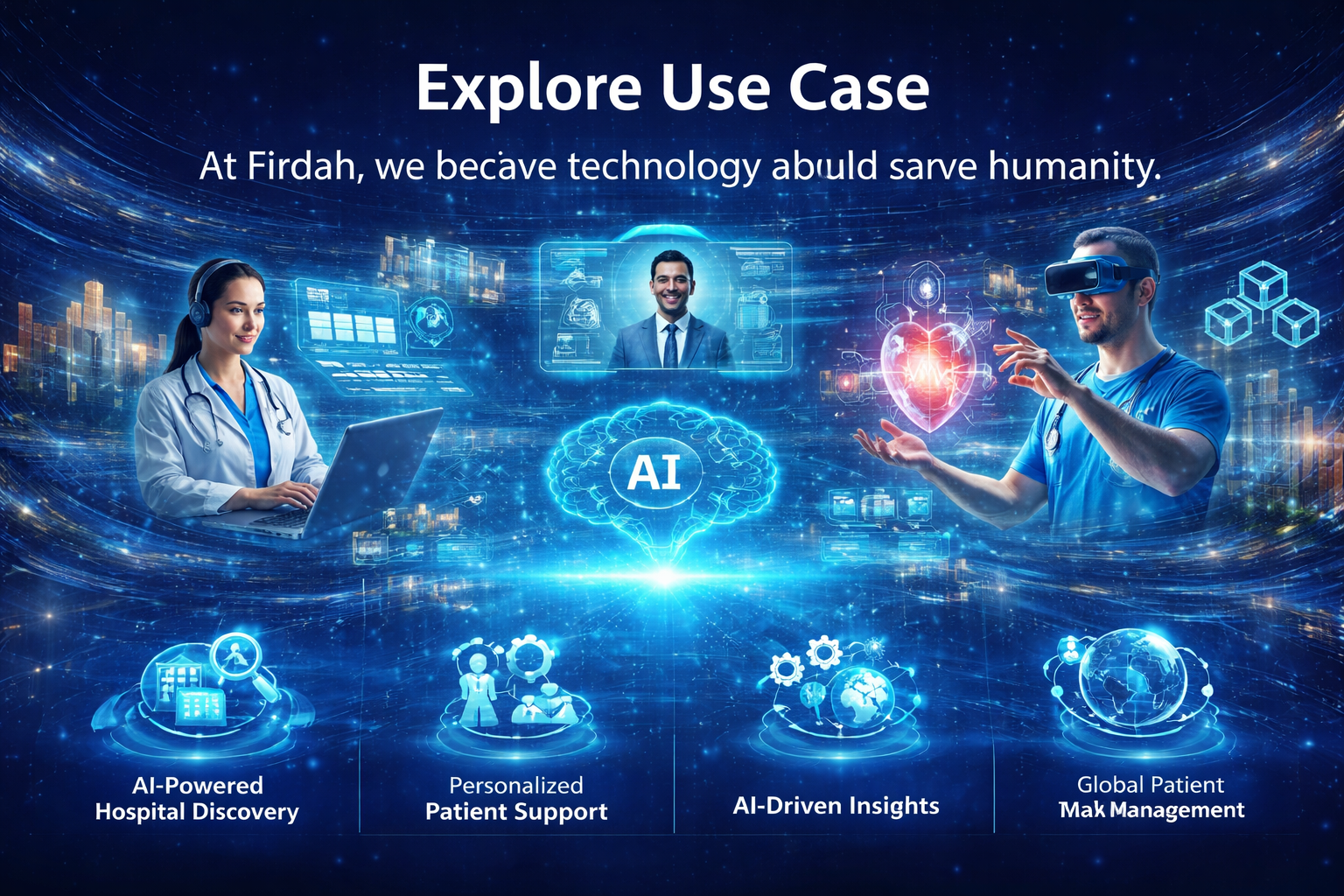 We develop intelligent healthcare platforms that improve patient outcomes, streamline operations, and enable seamless medical experiences across borders.